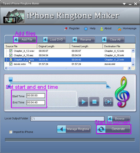 Finally, start to convert the iPhone ringtone by click the "Generate" button.