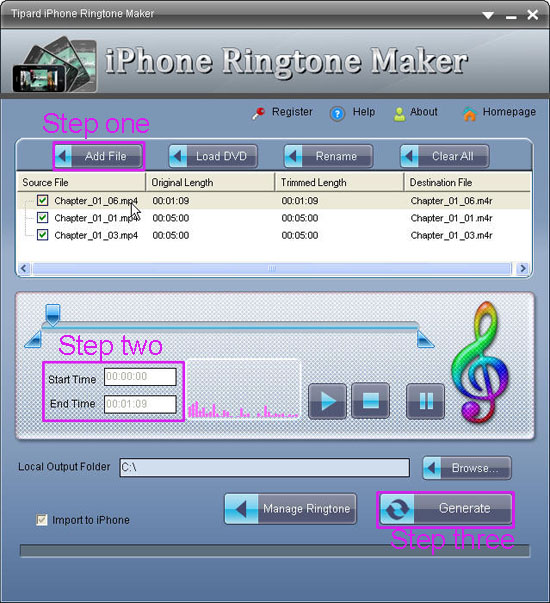 Finally, you can click the "Generate" button to start to convert the iPhone ringtone.