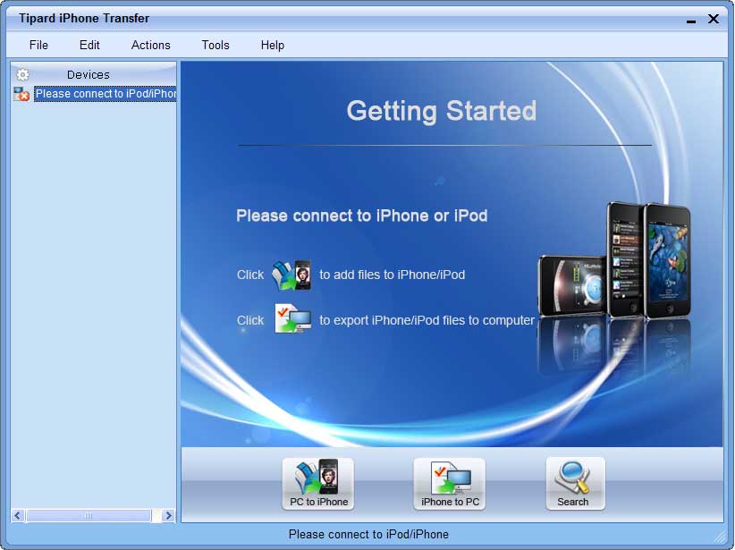 Tipard iPhone Transfer is a multifunction iPhone to PC and PC to iPhone transfer. This ultra-low prices iPhone Transfer will be your best choice. With it, you can use the fastest and most effective way to transfer iPhone to PC and transfer PC to iPhone. More than that, you can also backup your important movie, music and office files from iPhone to computer without losing anything. With such powerful features, transfer PC to iPhone 3G is nature an easy task. You also can convert video to iPhone for you to enjoy them on your iPhone.
